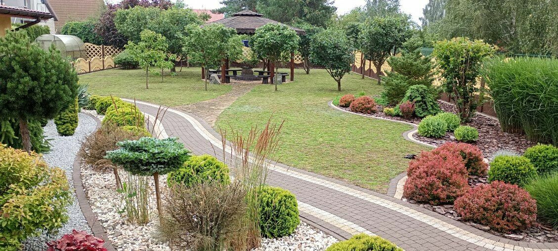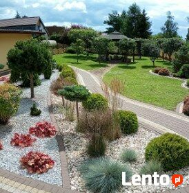 Na działce liczne krzewy ozdobne oraz drzewka owocowe ( ogród wykonany według projektu)