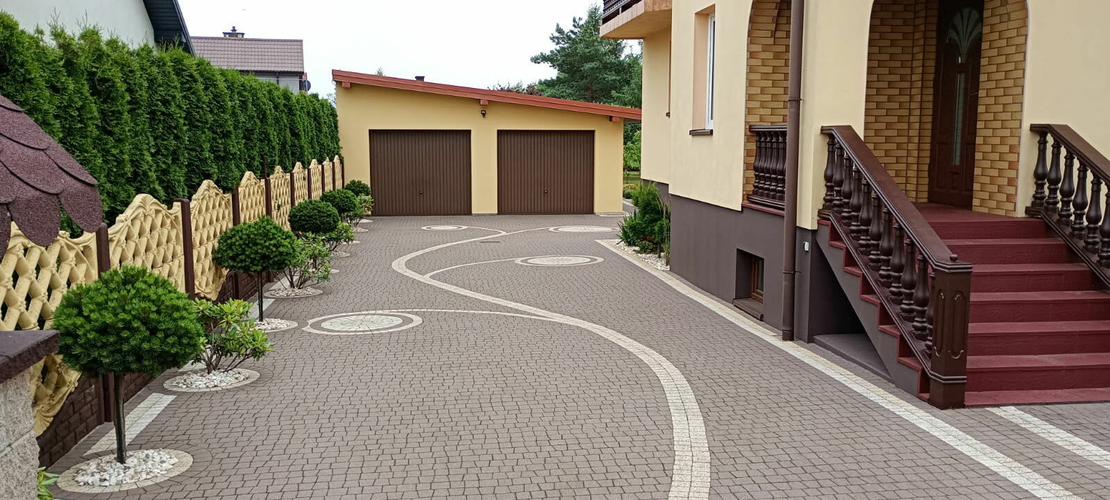 Dom oraz garaż wolnostojący, pokryty blachodachówka